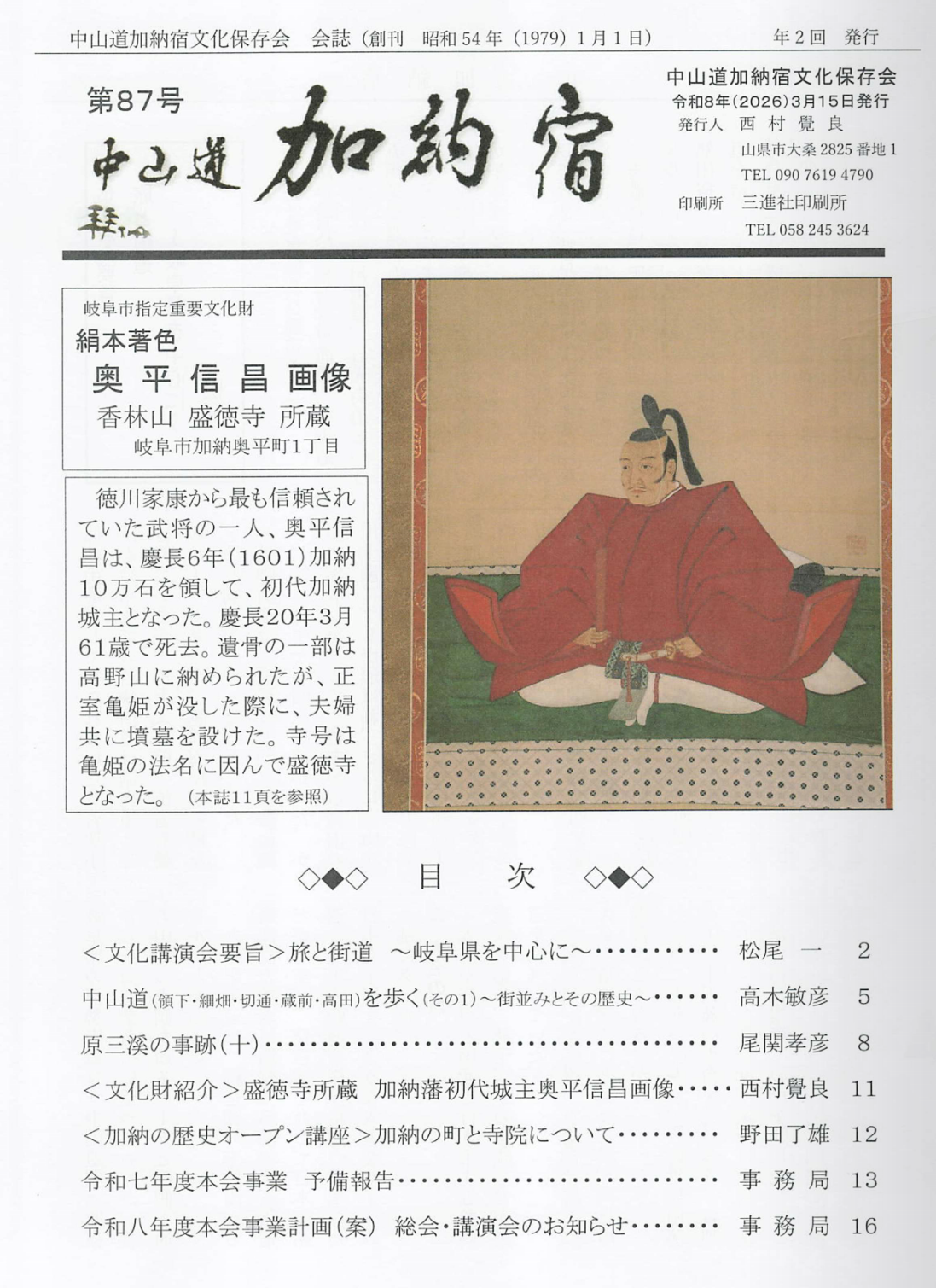 ~会誌「中山道加納宿」第87号を発行しました~
